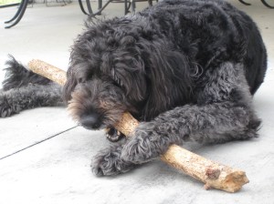 Chanel took the time to check out the perimeter of the fence for any needed repairs and then settled in for some wood work!