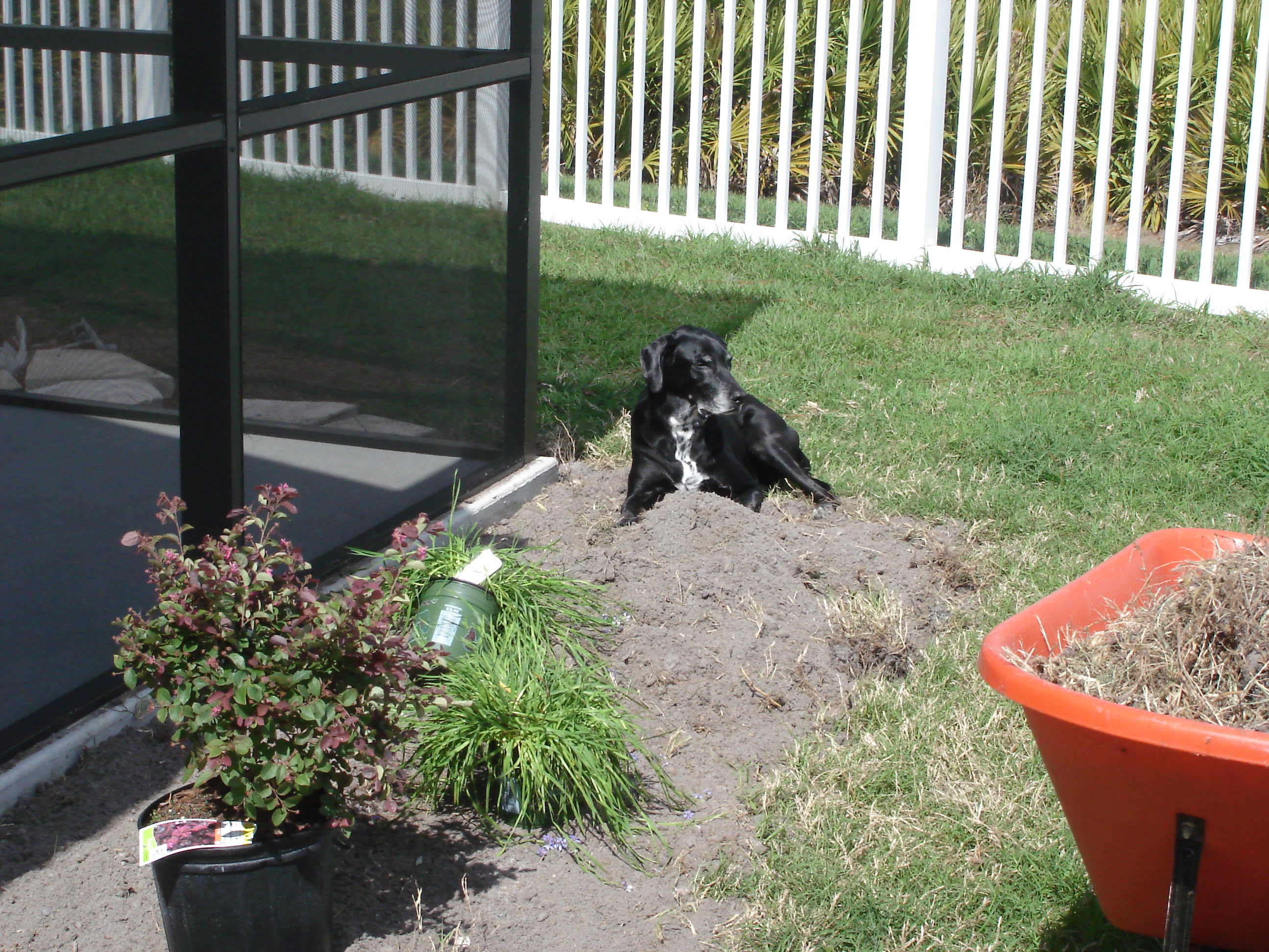 So yesterday after work, Alisha and I had to finish up some planting and stuff in the back yard before it got dark. And we had some help!