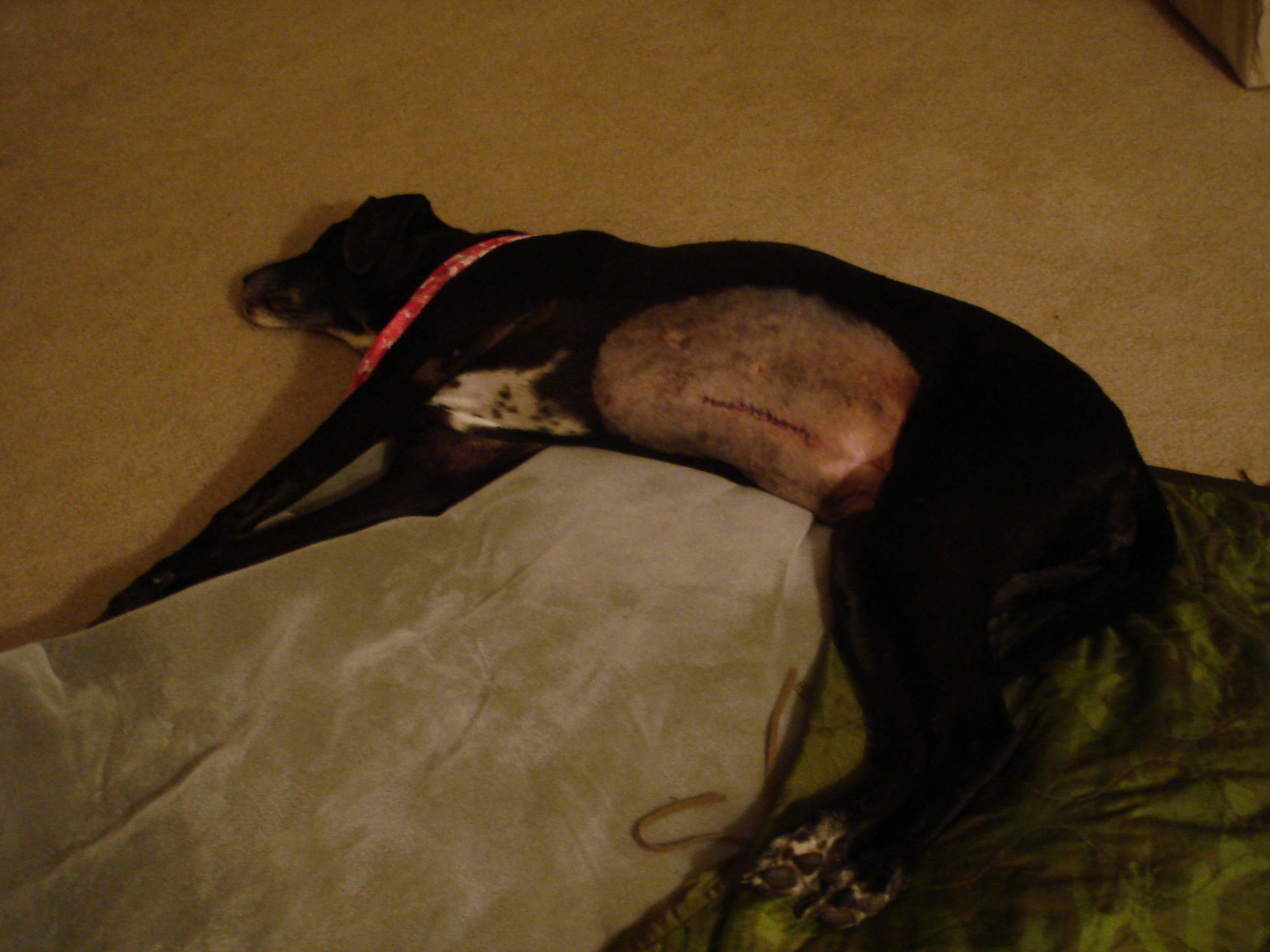 Two years ago last month, Alisha and I picked up Chloe from the vet after she spent the day there for observation following her knee surgery. It was on February 6th, 2009 and I remember it well because I thought for sure that she was going to die that day. She hopped into the car, excited as always to go for a ride and to see us. She was very thirsty though and was drinking out off a water cup that Alisha had. We got home and she dove right into the water bowl and drank for a while and I knew that wasn’t normal. It seemed like she hadn’t had a drink all day. I let Chloe and Chanel outside and they played for about a minute and then Chloe started to foam at the mouth and her stomach was very tight. I knew exactly what was happening from reading about it and knowing of the condition from being told about the movie Marley and Me. Her Stomach had twisted, otherwise known as bloat. I rushed her back to the car and off to the emergency vet we went.